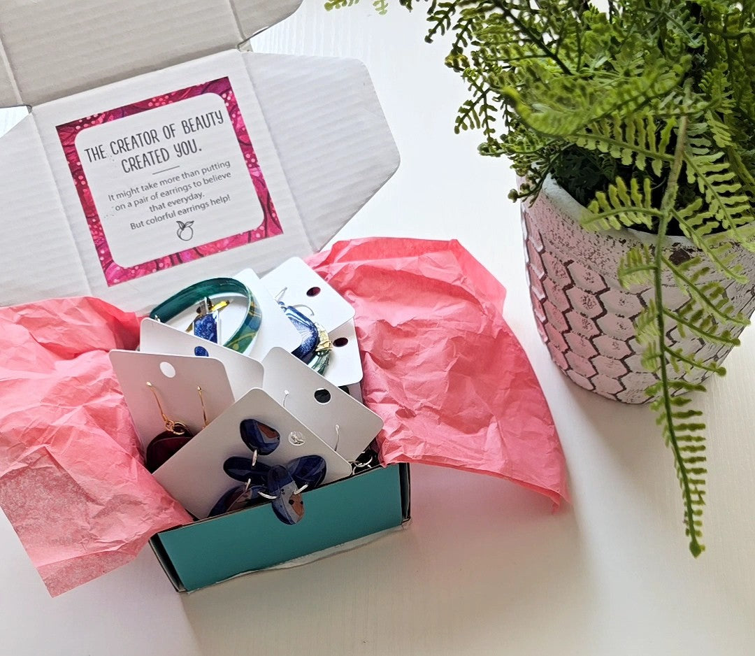 A quarterly box filled with handcrafted jewelry made from Becky’s original watercolor art. Every season you choose the styles you love and receive pieces created just for you. It is a simple, joyful way to collect meaningful, wearable art all year long.