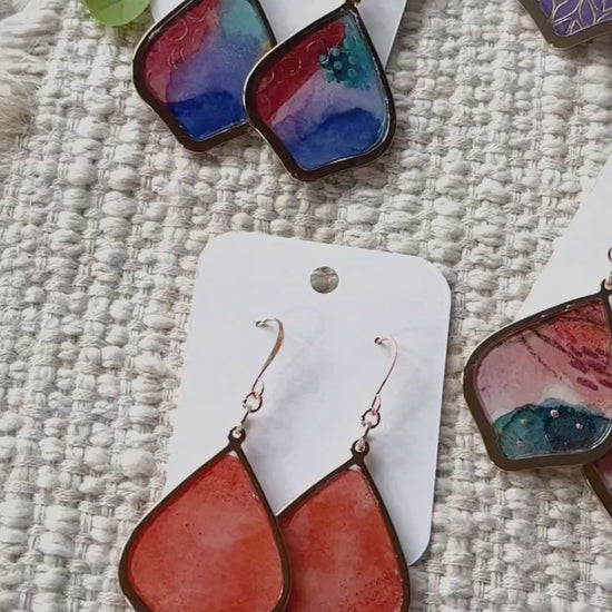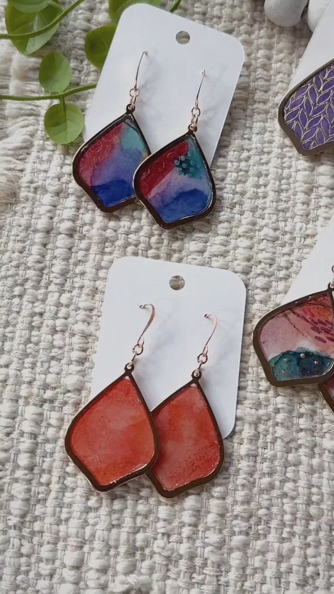 With rich jewel tones, glowing oranges, and even delicate gold accents, these earrings are a perfect mix of playful art and classic shape. Their soft, rounded teardrop silhouette makes them flattering and versatile, while the bold autumn palette ensures they stand out.