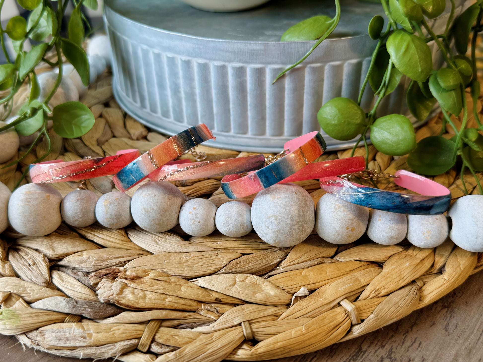 Bright, layered color with a little pop — Each one is hand-painted and made to stack or stand alone.
