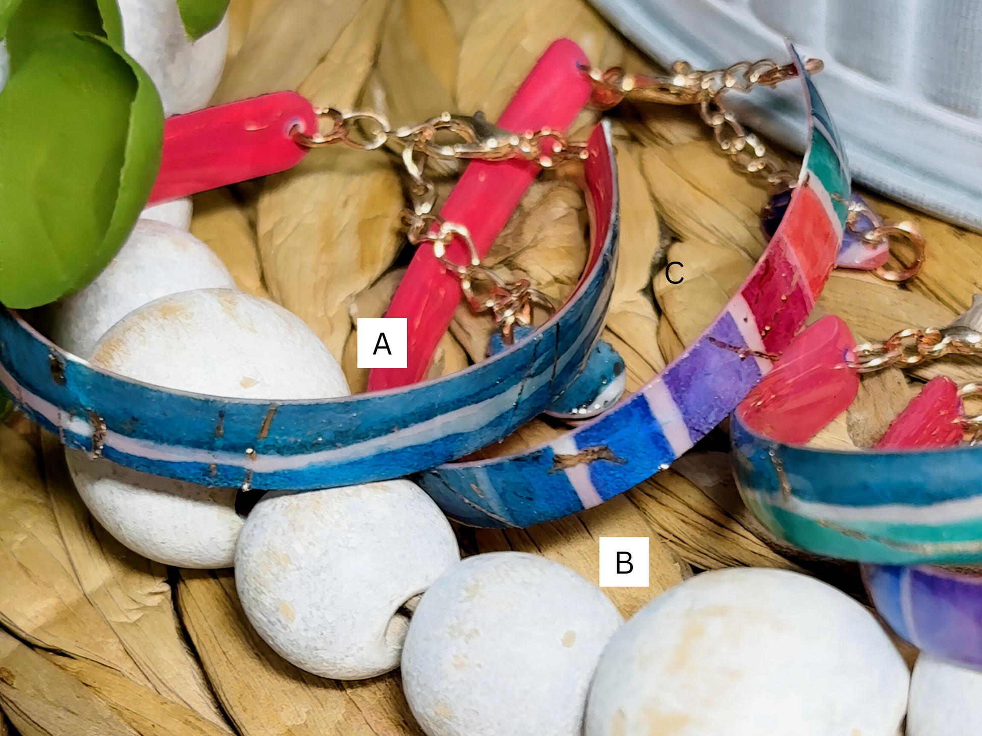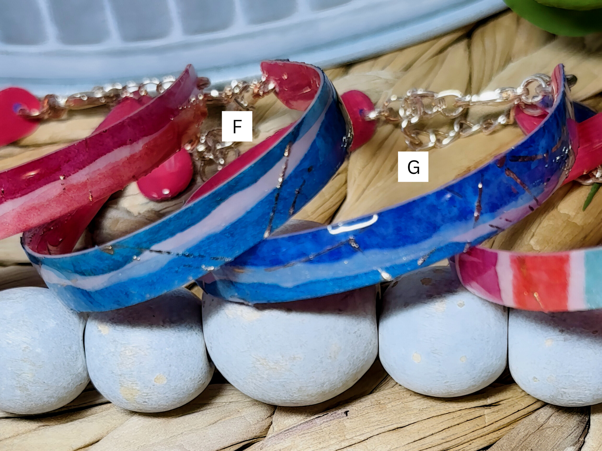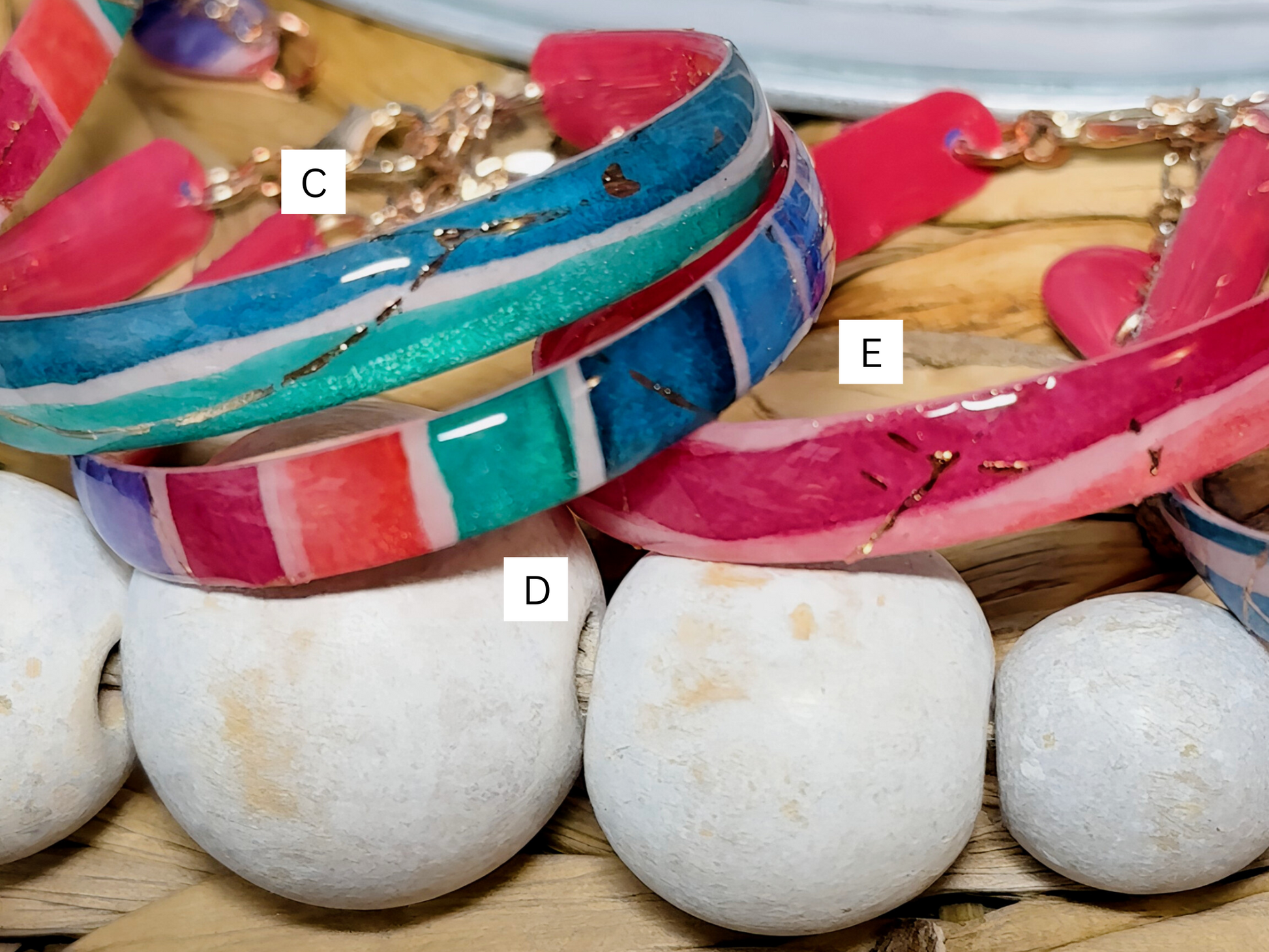 Bright, layered color with a little pop —these bangles were painted with fun and bright colors in mind.