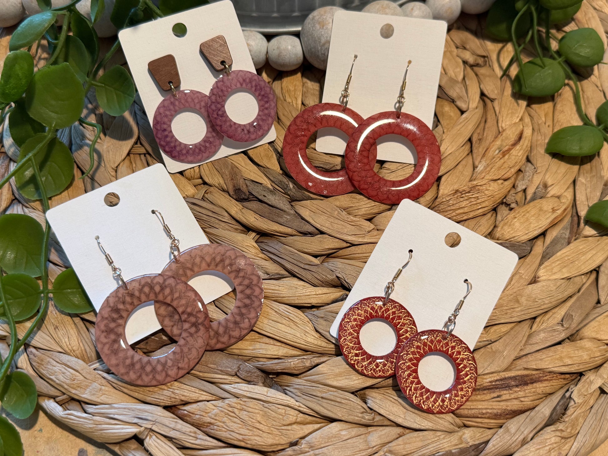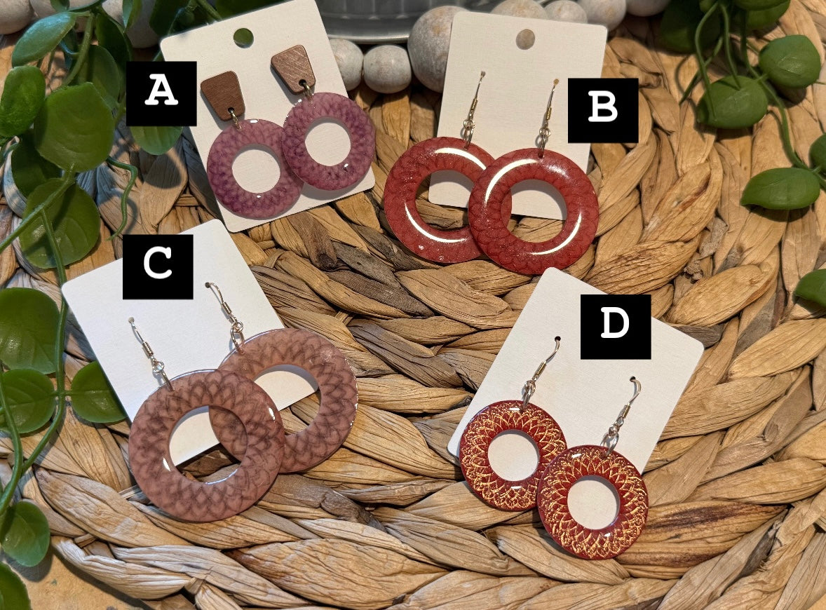 Original, hand painted watercolor paintings finished in resin. Nickel free and hypoallergenic metals.
