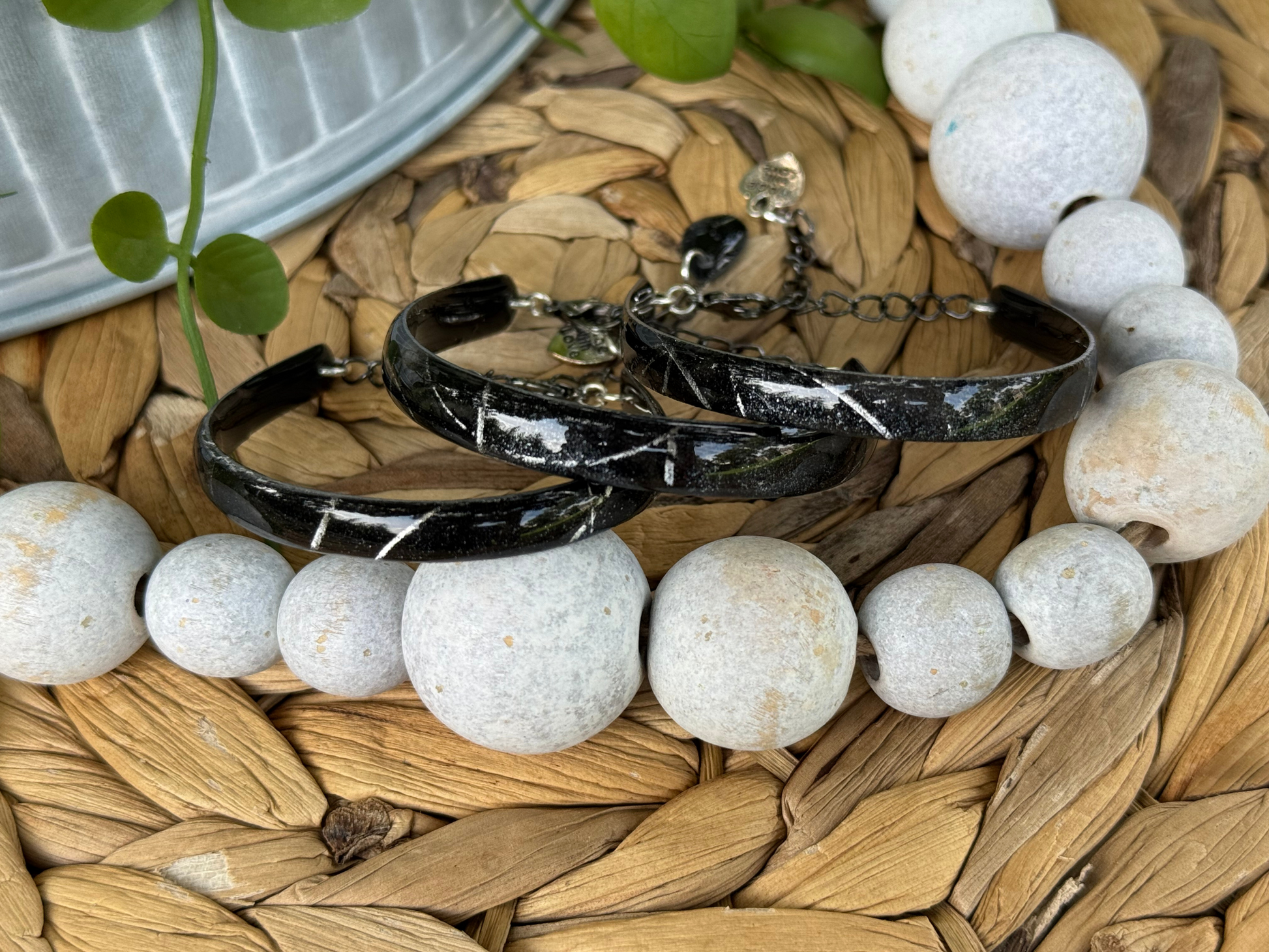 Painted in deep black with soft silver detail. These bangles are quiet, simple, and made to wear with anything—on their own or stacked for contrast.